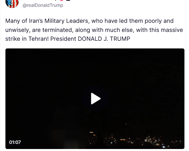 Eğitim Donald Trump, Tahran’a saldırı görüntülerini paylaştı: Birçok lideri öldürdük 10 gün süre vermişti, süre dolmadan bombardıman...